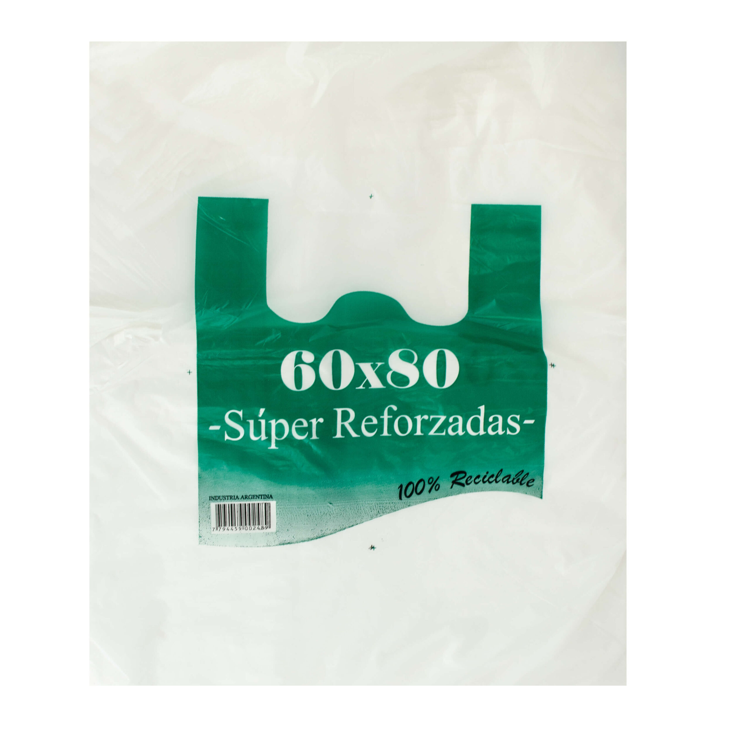 Bolsa de plástico durable con diseño Mamut, perfecta para el transporte de productos de tamaño mediano a grande.