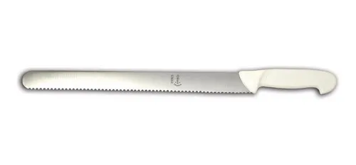 Cuchillo sandwichero profesional Eskilstuna 337-350, con hoja dentada de acero inoxidable de 35 cm y mango ergonómico de polipropileno blanco. Ideal para cortes precisos en pan y sándwiches.?