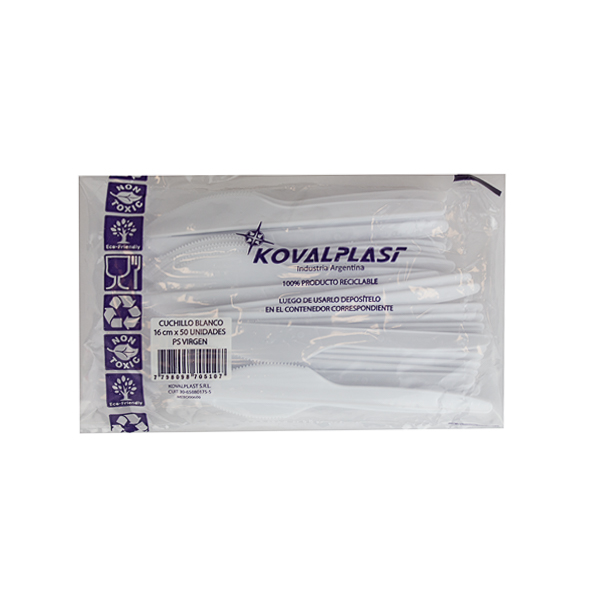 Cuchillos plásticos blancos en pack de 50.