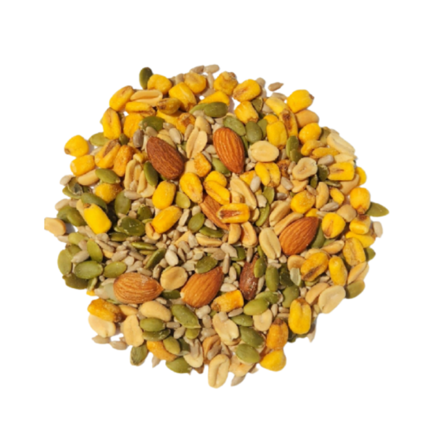 Este mix salado combina frutos secos tostados como almendras, maiz tostado, semillas de y maní, sazonados con sal marina. Es ideal para servir como aperitivo, acompañar bebidas o agregar un toque crujiente y sabroso a tus platos salados. Una opción deliciosa para quienes disfrutan de sabores intensos.