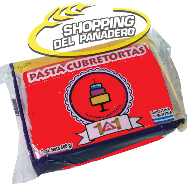Pasta para cubrir tortas 1 a 1 en envase de 500 gramos.