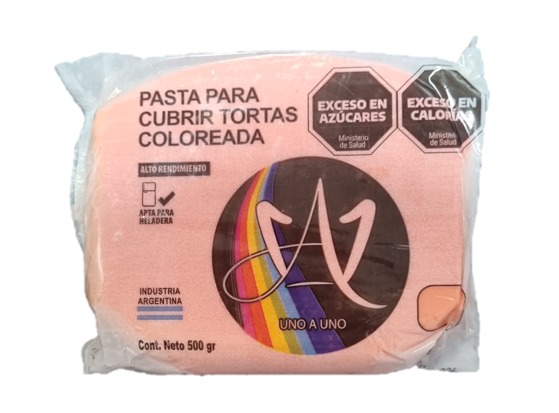 Pasta para cubrir tortas 1 a 1 en envase de 500 gramos.