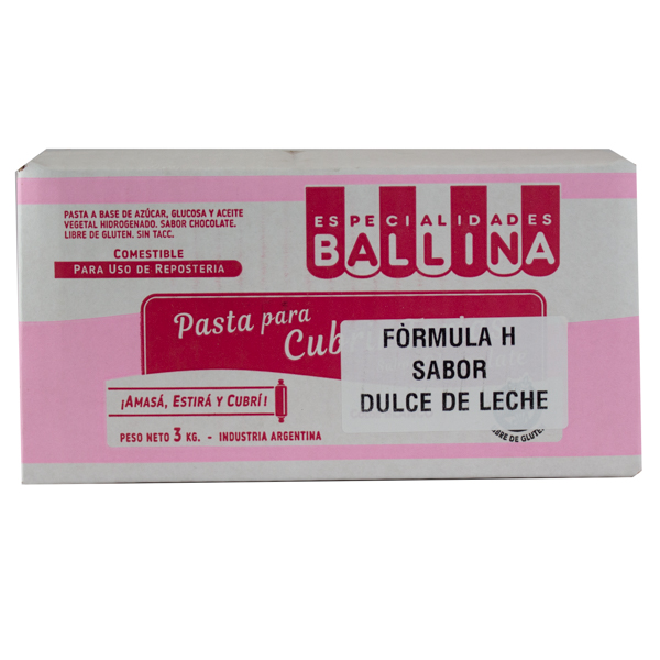 La Pasta Ballina Fórmula H con sabor a dulce de leche es una opción ideal para cubrir tortas y elaborar figuras decorativas en repostería. Su textura maleable permite modelado fácil y detallado.