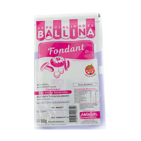 La Pasta Ballina Fondant Blanca es ideal para cubrir tortas, modelar figuras y realizar decoraciones detalladas en repostería. Fácil de manejar y con excelente elasticidad.