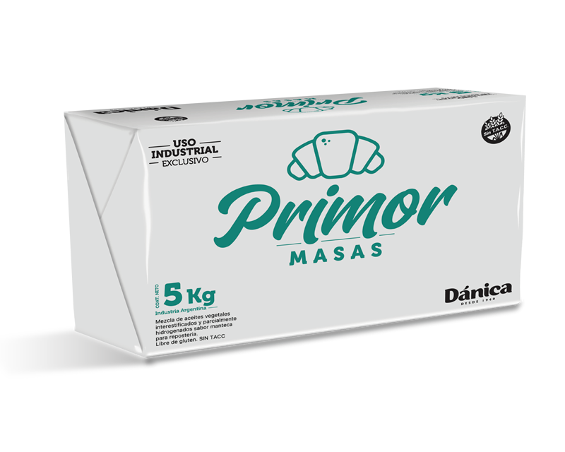 La PRIMOR MASA PILÓN de 5 kg es una margarina compuesta por fracciones bovinas blandas y aceite vegetal interesterificado, diseñada para su uso en panadería y pastelería. Su versatilidad permite su aplicación en batidos firmes y livianos, así como en la preparación de hojaldres cuando se trabaja en frío con períodos de descanso. Este producto aporta un sabor y aroma a manteca, mejorando la calidad y el perfil organoléptico de las preparaciones. Es especialmente útil en la elaboración de budines, masas secas, tortas y tartas. El punto de fusión de esta margarina se sitúa entre 38 y 40 ºC, lo que facilita su manejo en diversas aplicaciones culinarias.