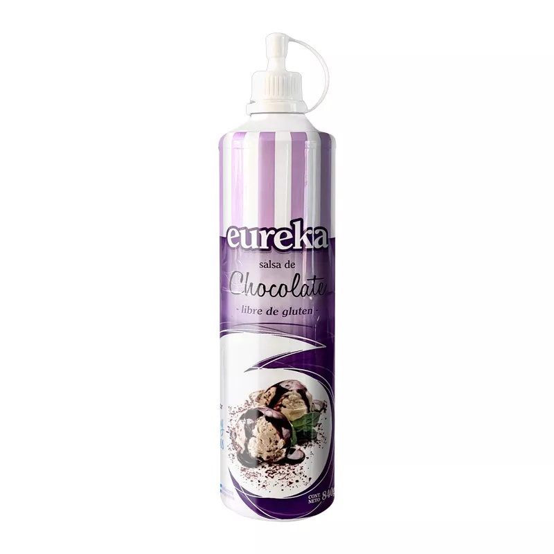 Sirope de chocolate Eureka de 840 g en pomo, ideal para decorar y realzar el sabor de postres, helados y bebidas con un toque dulce y chocolatoso.