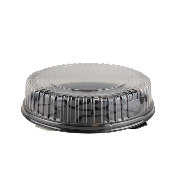 Tartera plástica transparente de alta calidad, ideal para transportar y conservar tartas. Diseño práctico y resistente, perfecto para eventos y comercio.